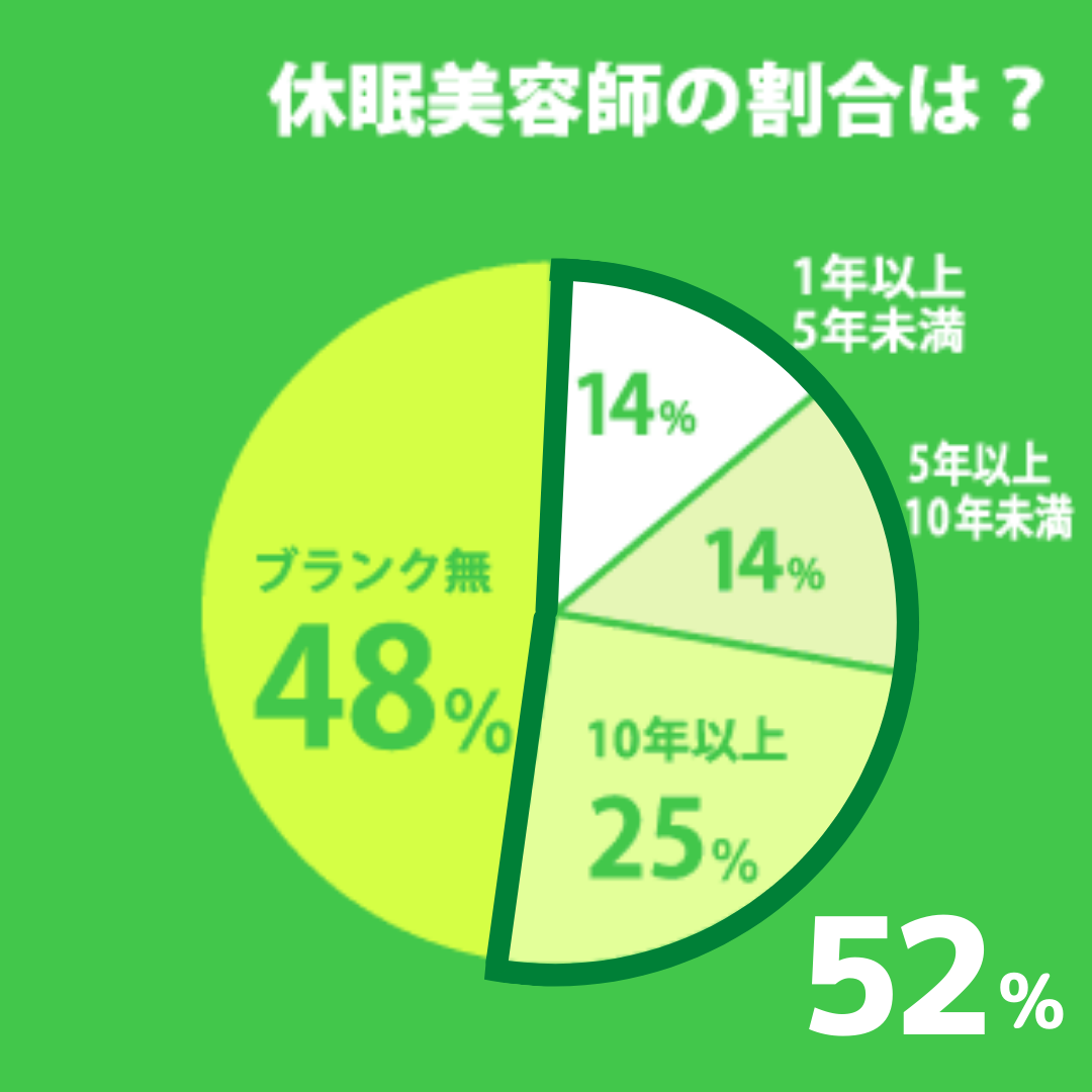 国内の休眠美容師の数は、2019年度末時点での従業美容師数が約54万人(※1)であるのに対し、美容師免許の登録者数は厚生労働省による定期的な発表がないものの累計で130万は超えると予想されることから(※2)理論上は75万人程度、働く可能性が低い人を加味しても50万人程度と推測しています。
