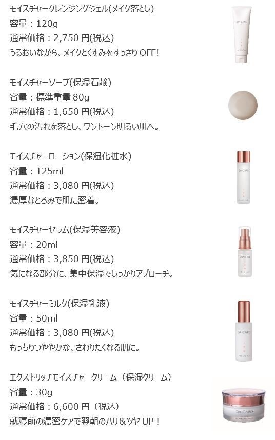 初めてご利用されるお客様に、上記6商品を全部試せる「DA CAPOトライアルキット」通常価格:1,100円(税込)でご用意しております。このたび、本オンラインショップ開設を記念し、1,000セット限定でオープン特別価格:550円(税込・送料無料)で販売いたします。是非一度お試しください。