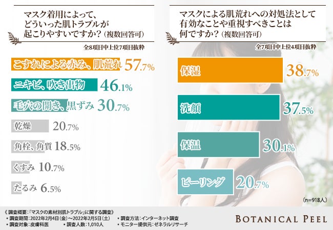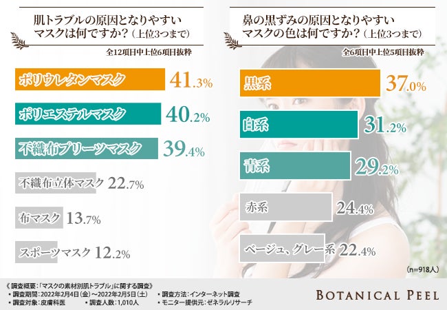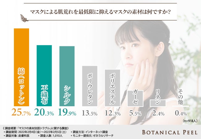 そこで今回、『BOTANICAL PEAL』https://www.botanical-peel.com/)を販売する株式会社CREDEAは、皮膚科医を対象に、「マスクの素材別肌トラブル」に関する調査を実施しました。