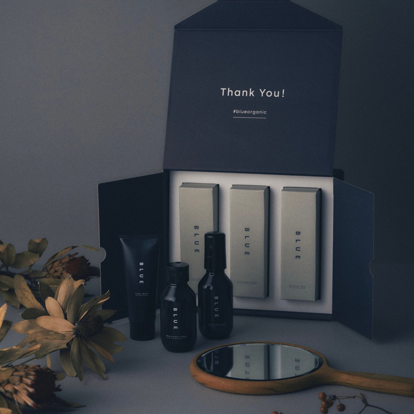 テカリやすく乾燥もする。さらに水分量も女性の半分と言われる男性の肌。男性特有の肌質を研究し、私たちが着目したのは自然がもたらす力です。厳しい環境でも生き抜く植物や花、果実などのエキスを中心に、男性の4大肌悩みである「ニキビ・テカリ・乾燥・エイジング」のケアに特化した原材料を厳選。BLUEは、自然がもたらす恵みによって、肌を美しく、心を満たしていくメンズ オーガニックスキンケアブランドです。