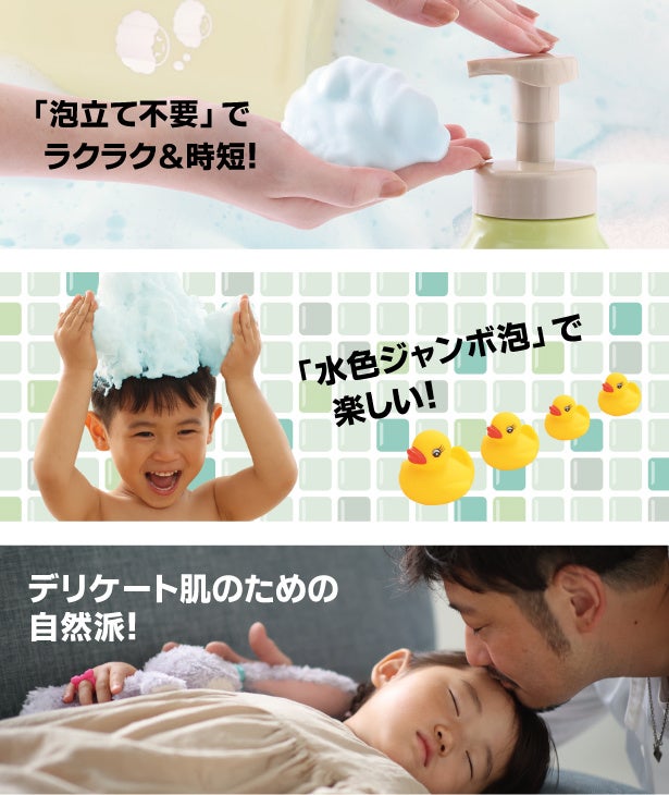 汗や汚れもしっかり落として欲しいけど、やっぱり子ども用だから優しい成分であって欲しい。そんなママパパさんを想って、美容メーカーさんが初めて子ども用に開発を試みた大人も使えるシャンプー、トリートメントです」