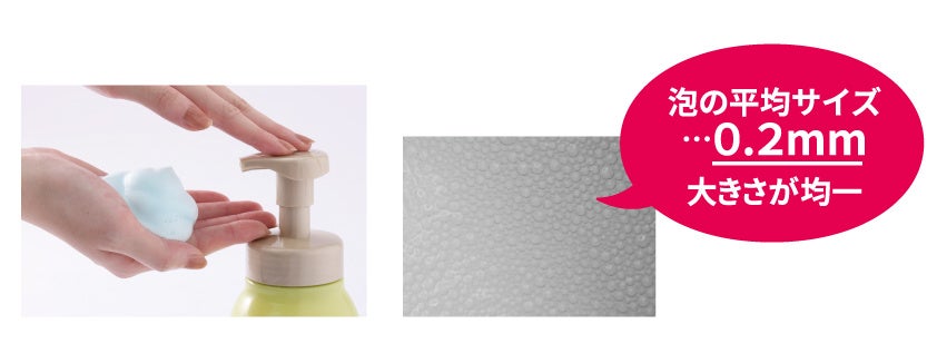 また、一つ一つの泡がすごく細かく、0.2ミリの「毛穴サイズ」です。泡立てないのに毛穴の中までしっかり洗えますので、お子様の一人洗いにもお勧めです。