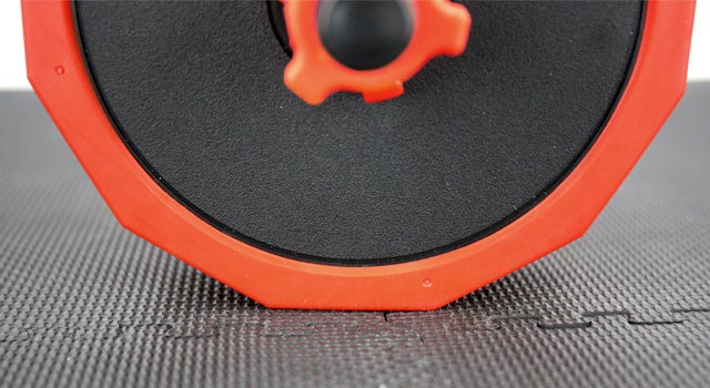 円形のプレートでは床に置いたときに不意に転がってしまいますが、DARBELL Maxのプレートは十二角形の角張った形状をしているため転がりにくくなっています。