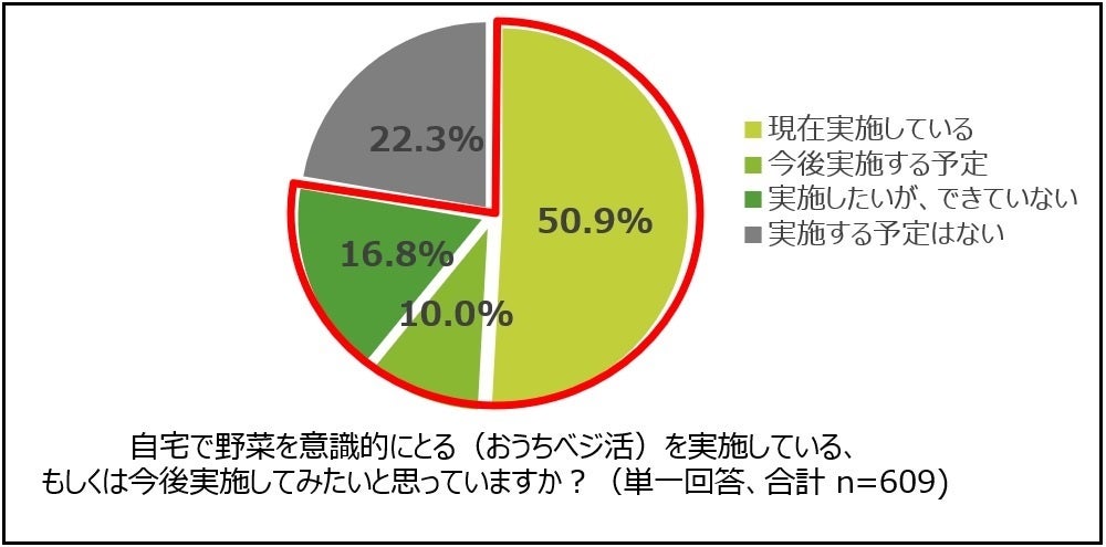 また、エステーの調査では、自宅で野菜を積極的に食べる「おうちべジ活」を実施している・したい人は約8割にものぼり、野菜を料理に取り入れたいというニーズが高いことが分かっています 。一方で、鮮度が低下しやすいことから、廃棄してしまうことを理由に野菜の購入をためらってしまう人は約半数いることも明らかになっています(※2)。