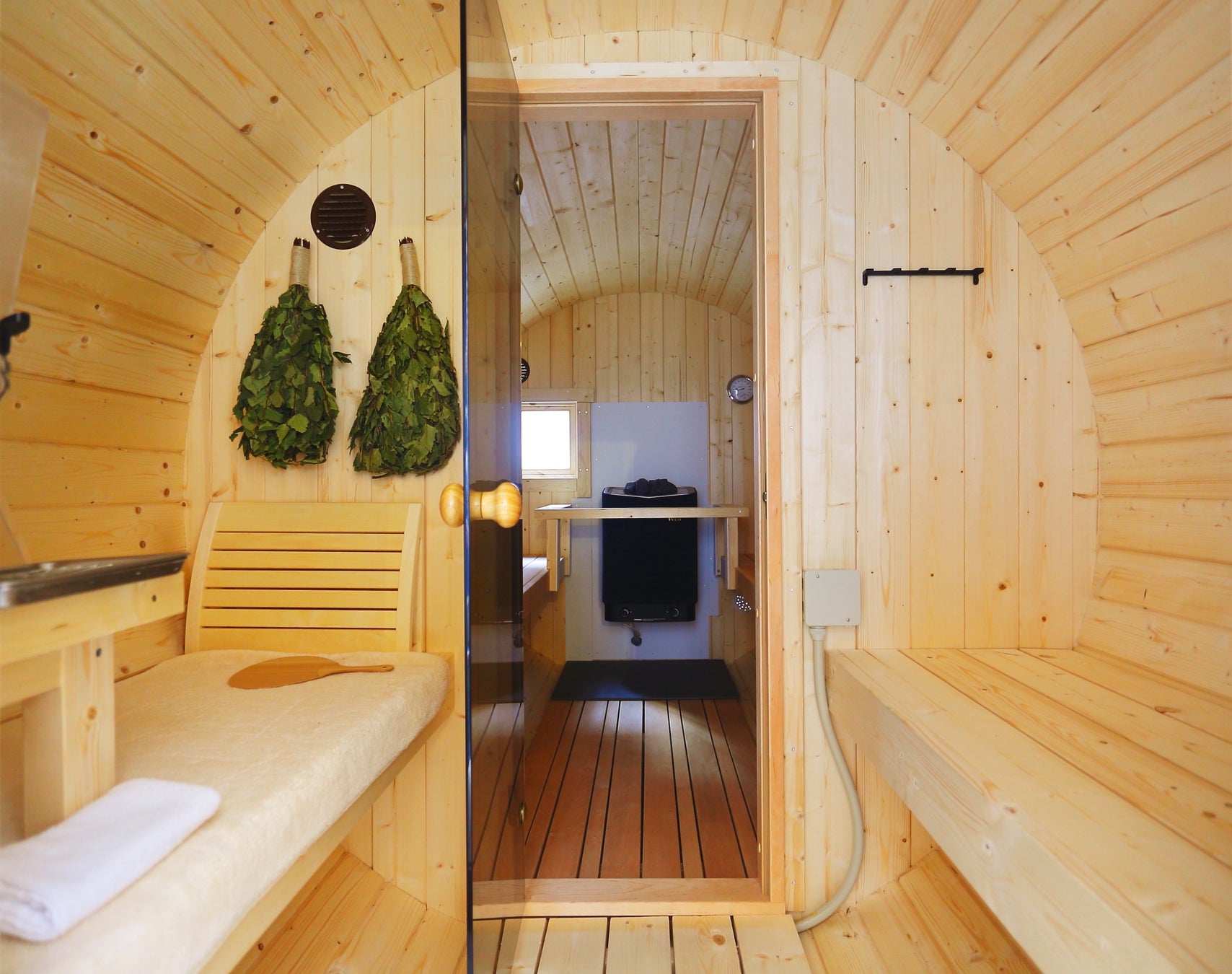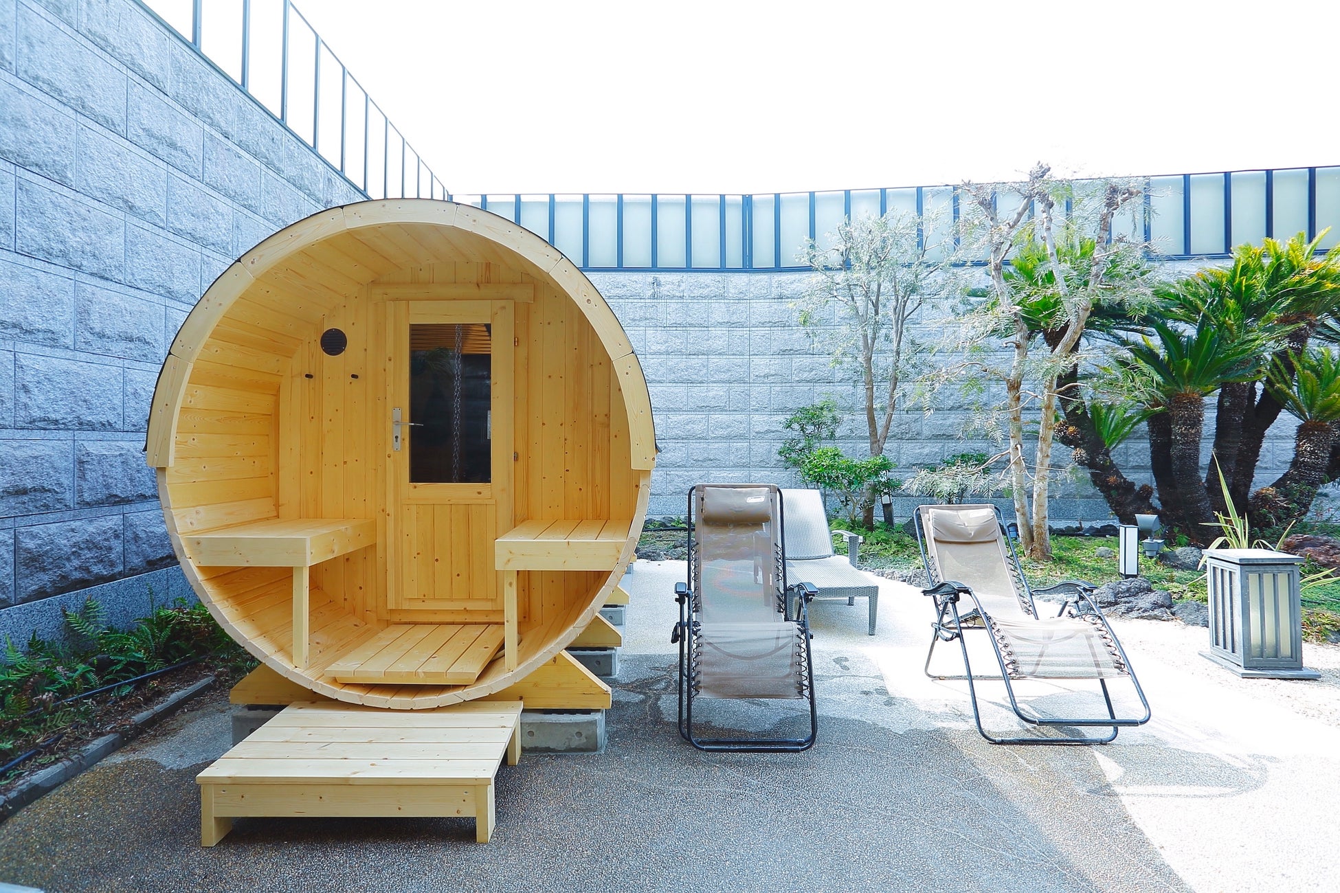 バレルサウナは樽型が特徴的な屋外用・屋内用のサウナです。円形の天井に沿って熱気が自然に降りてくるため、極上の蒸気を堪能いただくことが可能です。エストニアでは手軽に設置・堪能できるアウトドアサウナとして人気を博しており、近年日本でも宿泊施設や温浴施設における設置が増えています。