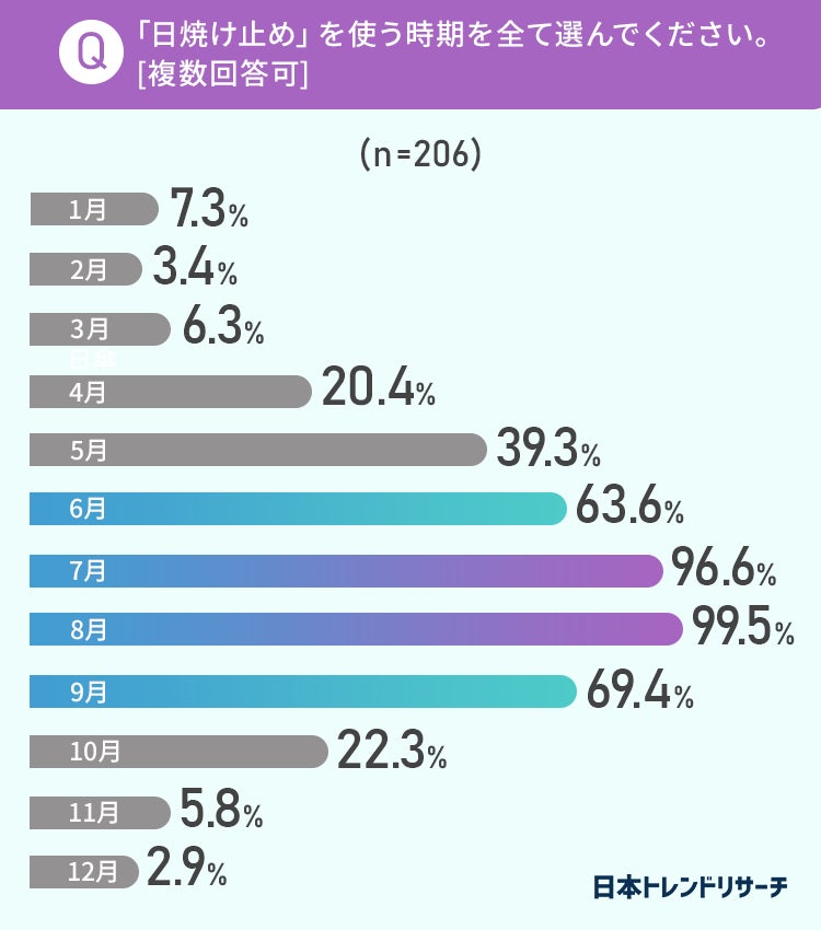 多くの方が「7月」「8月」は日焼け止めを使うようです。