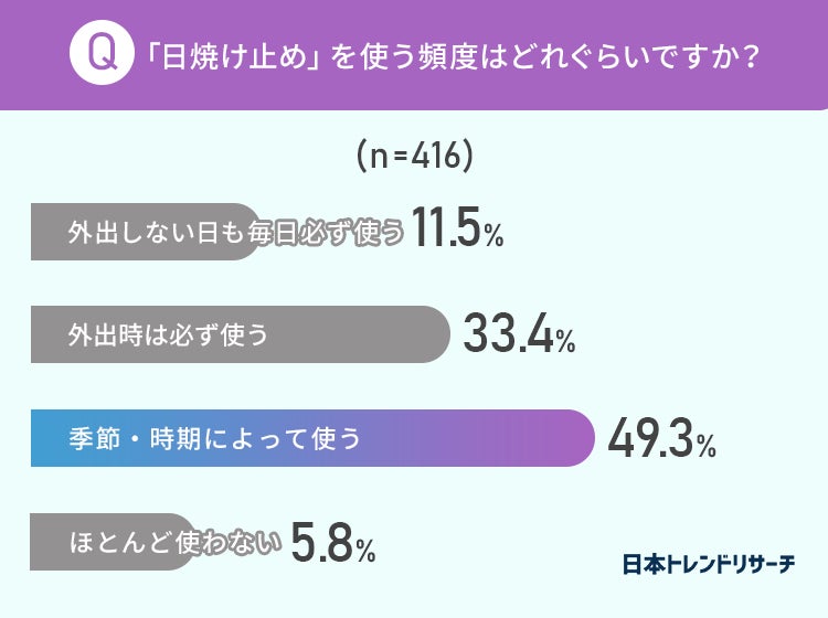 日焼け対策として「日焼け止め」と使うと回答した方(416名)に、どのようなときに「日焼け止め」を使うのか聞きました。