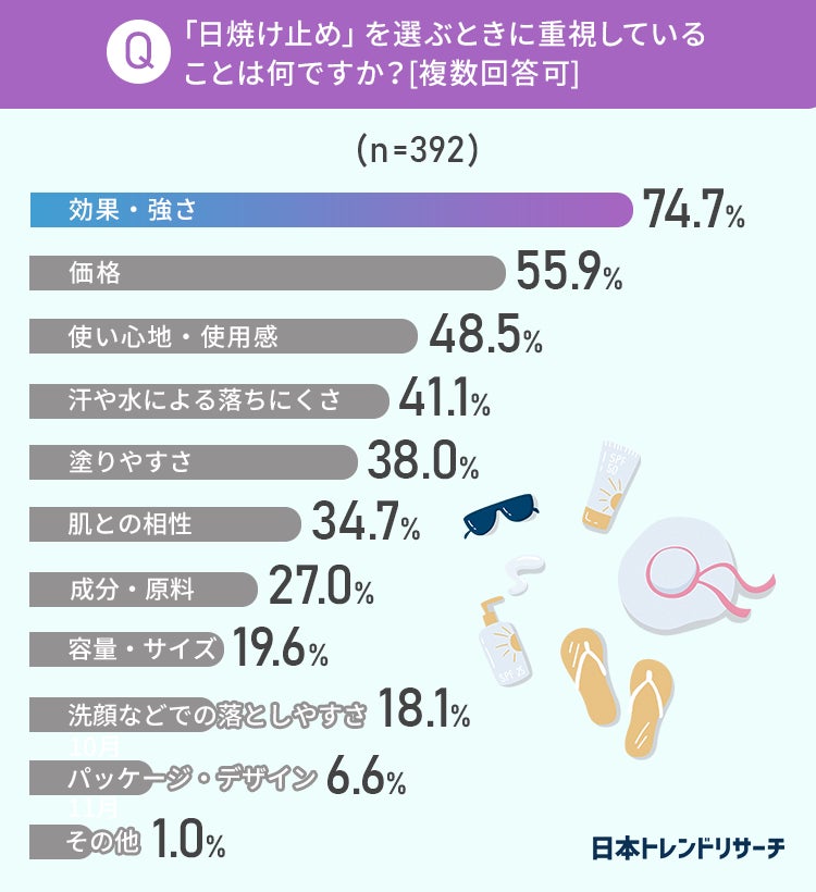 では、日焼け止めを選ぶときにどのようなことを重視しているのでしょうか。