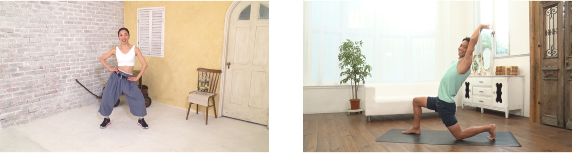 本サービスには、フィットネスクラブのインストラクターを養成・指導する立場の『マスタートレーナー』や、エアロビックのチャンピオン、次世代を牽引するフィットネスインストラクターを選ぶコンテストのアジア大会優勝者、有名アーティストのミュージックビデオやプロモーションビデオなどを総合演出する振付師、プロのダンサーなど、確かな実力をもったインストラクター28名が出演しています。