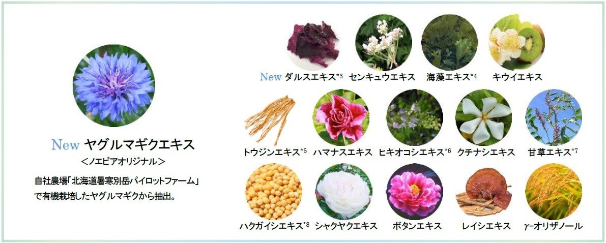 ノエビアオリジナルのヤグルマギクエキスなど、自然のめぐみをいかした15種類の美容成分*2で構成される独自の「クリアルミナス処方」を採用。うるおいに満ち、澄み渡るような素肌へ導きます。