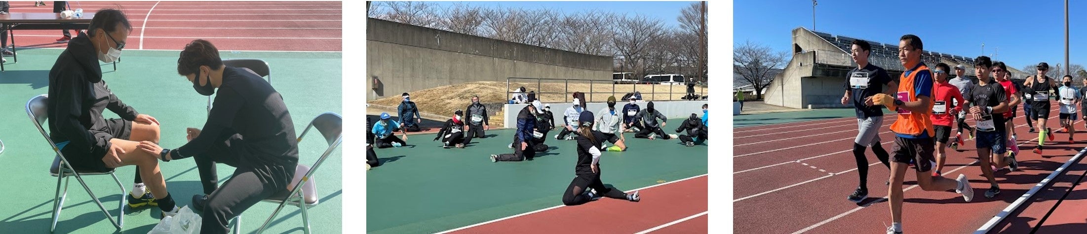 ストレッチや靴紐の結び方などレース前のウォームアップにも最適です。