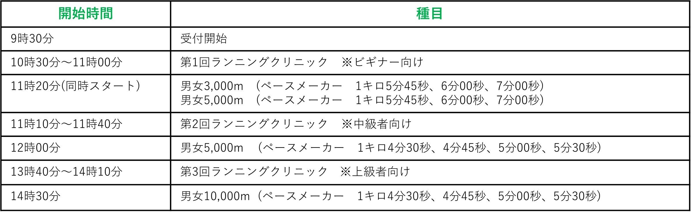 種目:男女3,000m/男女5,000m/男女10,000m