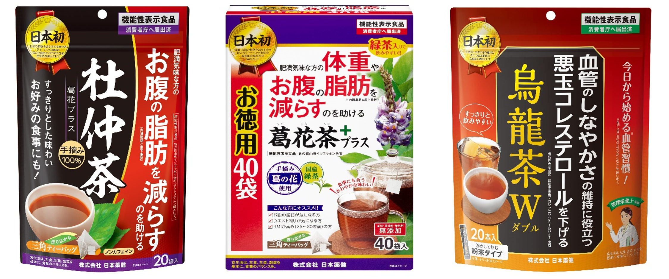 株式会社日本薬健(本社:東京都港区新橋二丁目20番15号、代表取締役:丸山 忠生)は、機能性表示食品のお茶シリーズより「杜仲茶」、「葛花茶プラス」、「烏龍茶W」の3商品を2022年3月28日(月)より全国のドラッグストアにて発売いたします。