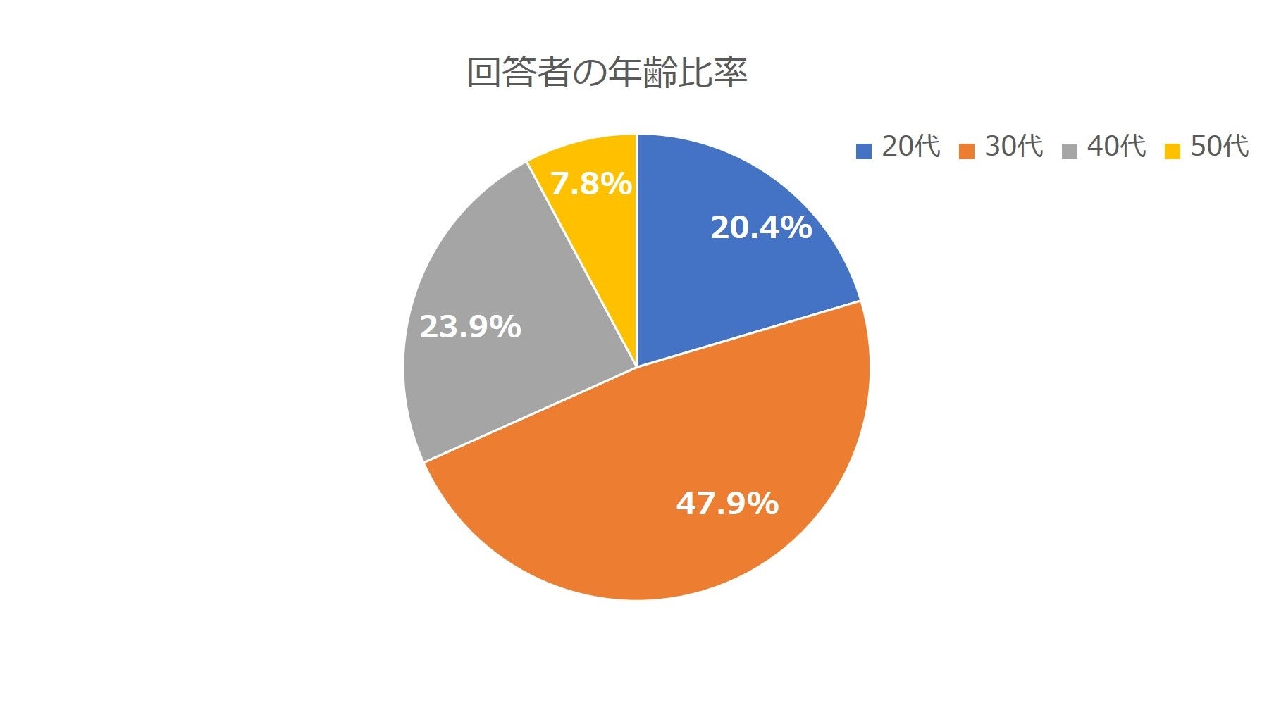 回答者の年齢構成は「20代」が112人:20.4%、「30代」が263人:47.9%、「40代」が131人:23.9%、「50代」が43人:7.8%です。