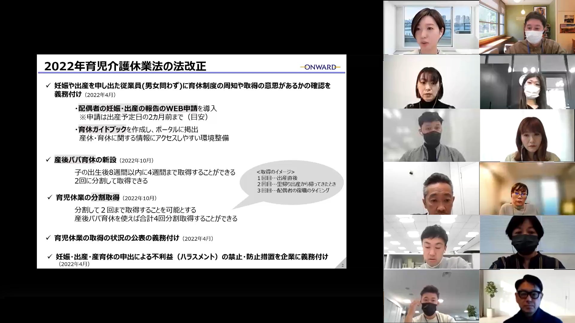 2021年12月9日(木)、育休取得促進のための管理職向けオンライン研修を実施。