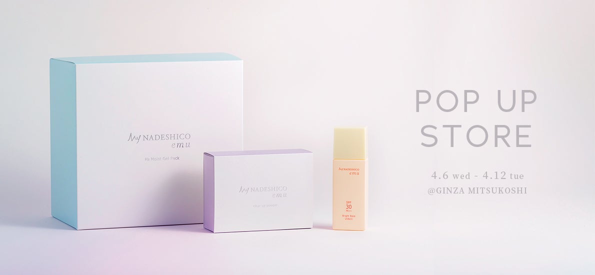 株式会社アンジェラックス(本社:長野県長野市、代表取締役社長:大杉 みどり) は 、 2022年4月6日(水)〜2022年4月12日(火)に銀座三越3F「ルプレイスプロモーション」にて初のポップアップストアをオープンいたします。ポップアップストアの初日は、アンジェラックスのオリジナルコスメブランド『My NADESHICO emu』の新商品発表も行い、商品をいち早くお買い求めいただける記念すべき日となります。また、代表の大杉がセレクトした、イベント限定のお得なセット商品もご用意しております。用途や肌質に合わせて『My NADESHICO』をお楽しみいただけます。