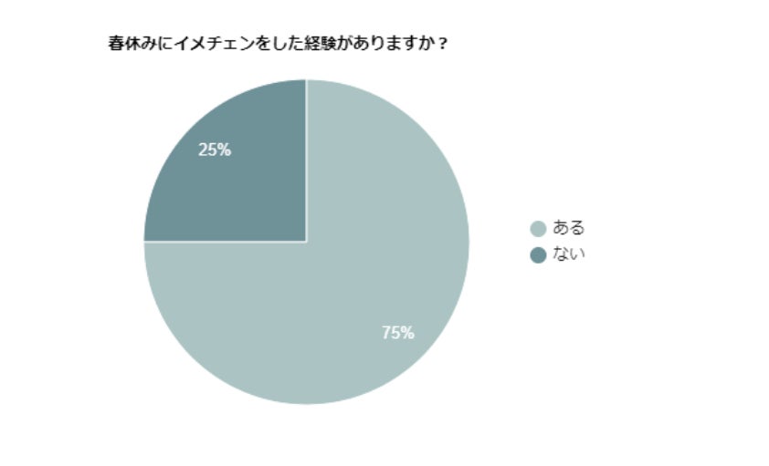 綺和美では、「春休みにイメチェンをした経験がありますか?」というアンケートを行いました。すると、75%の人が「ある」と回答したのです。