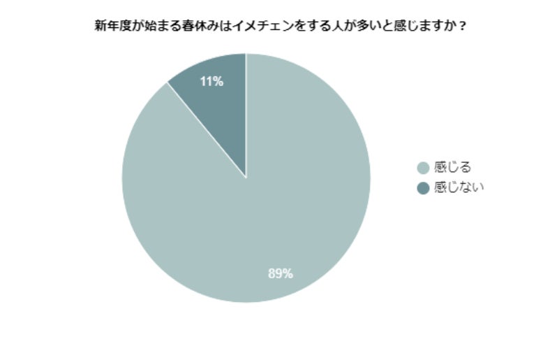 春休みにイメチェンをする人が多いと感じる人は89%という結果になりました。春になると日差しも多くなり、とくに女性では髪が長いと暑くなるのでバッサリ切りたいと感じる人は多いですよね。