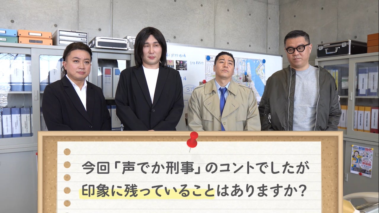 Q:今回「声でか刑事」のコントでしたが、撮影中印象に残っているエピソードはありますか?
