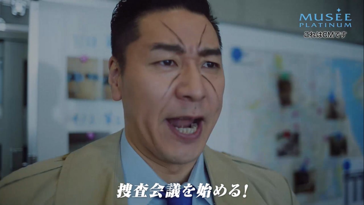 今回のCMでは「“声でか”刑事」として、男性刑事に扮した長田さんと長谷川さん、女性刑事役のじろうさんの3人が“大声”で会議をしている様子からスタート。途中から新人女性刑事として松尾さんが登場しますが、自信がなくうまく大声が出せません。そんな松尾さんがミュゼプラチナムに通うことで自信を持ち、「“声でか”刑事」として大声が出せるようになる、というストーリーです。