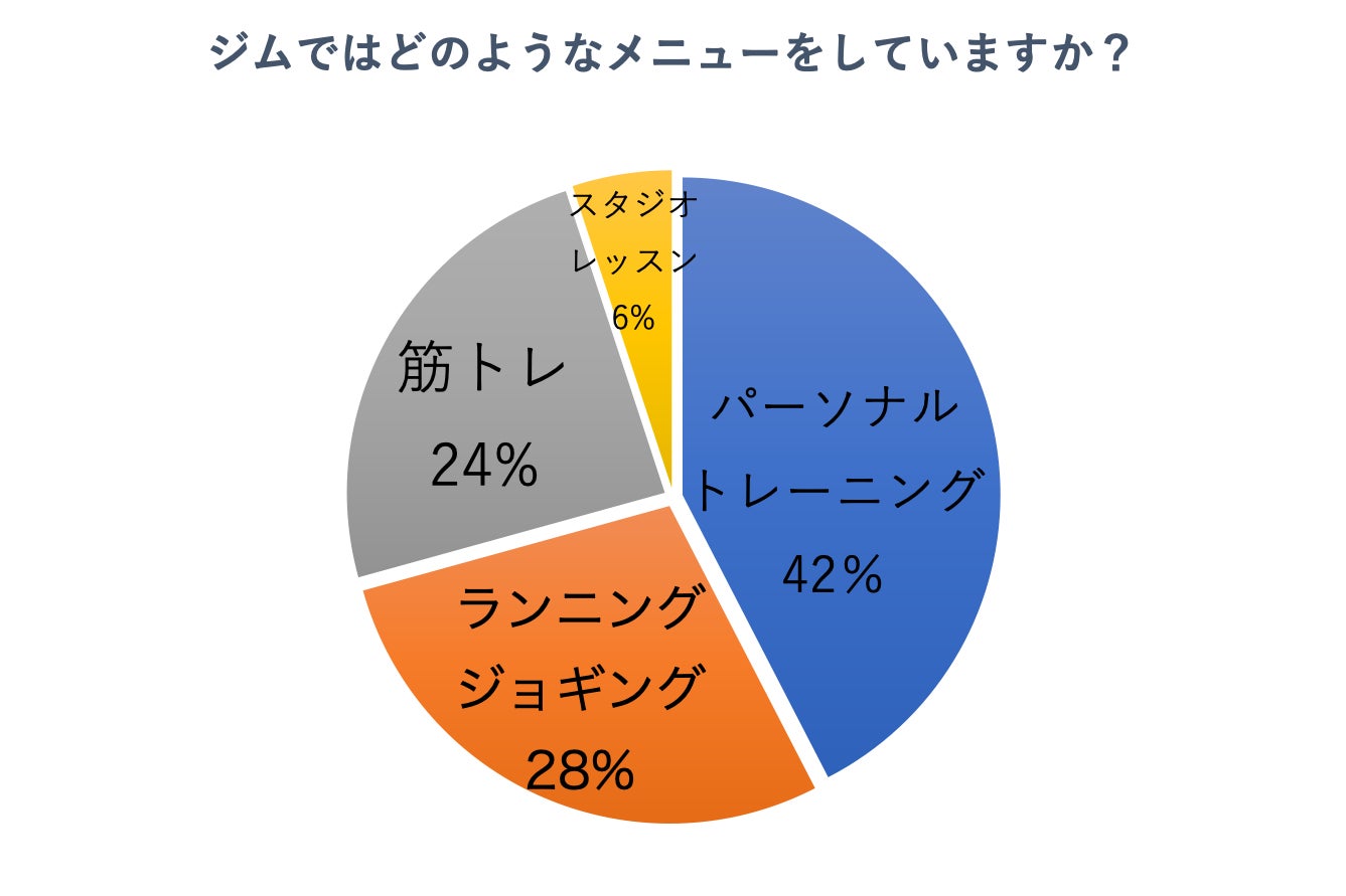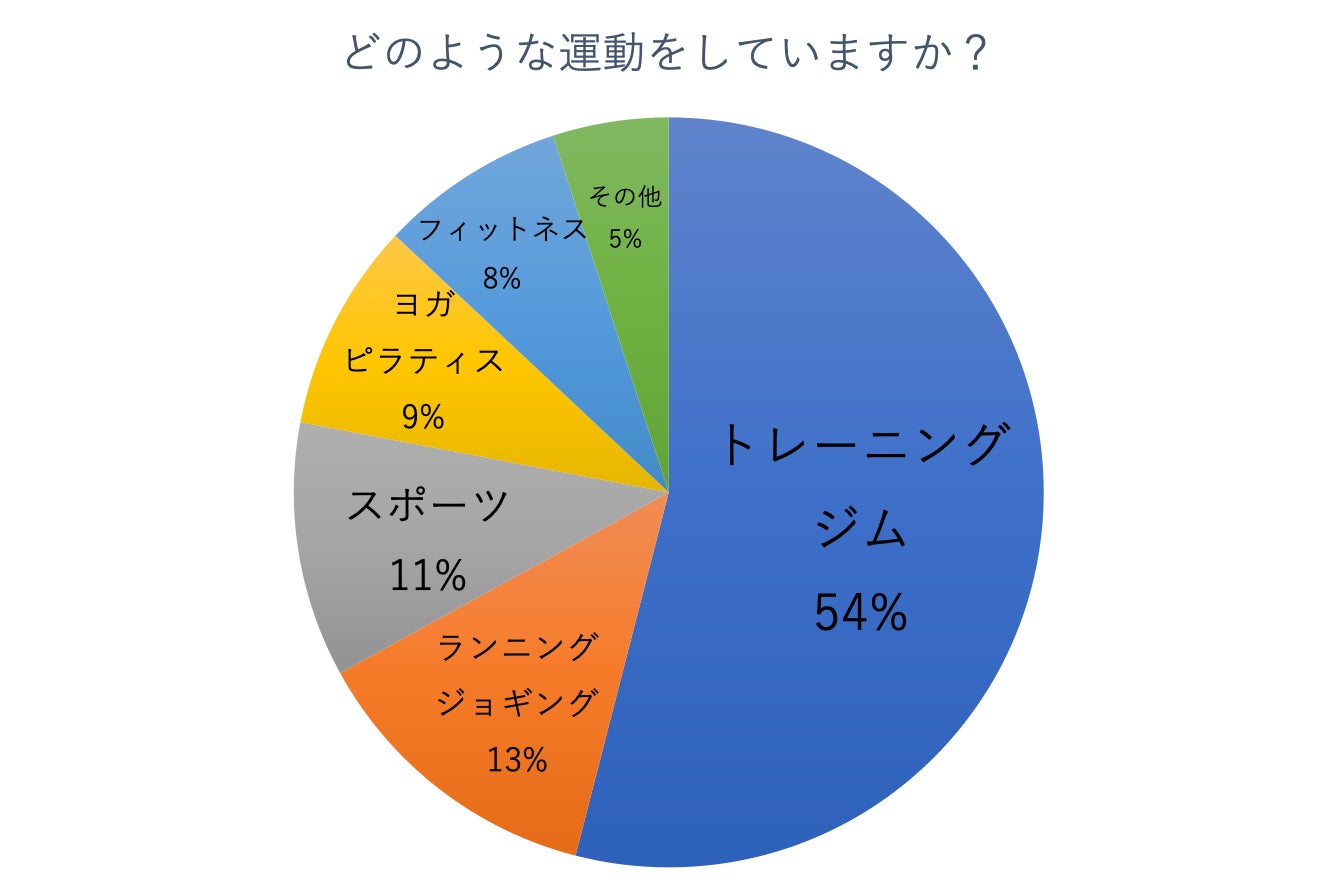 全体の割合を見るとパーソナルトレーニングにより運動を効率的に行なっている方が多く、短い時間でしっかり効果を出したいという方が多いよう見受けられました。運動不足の方、時間画増えたという方、健康や美容のためにいろいろと取り入れてみるのはいかがでしょうか。