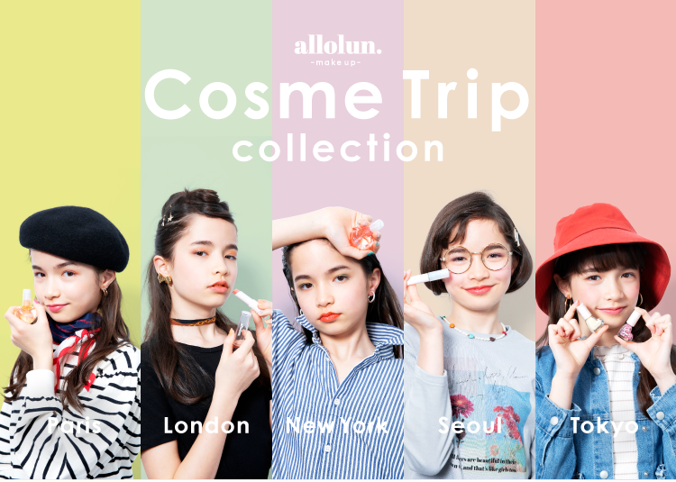 子ども服ブランドのプチプラキッズコスメ【allolun.-makeup-】から2022年のSS新作が登場♪世界の5都市をテーマに企画した『Cosme Trip Collection』
