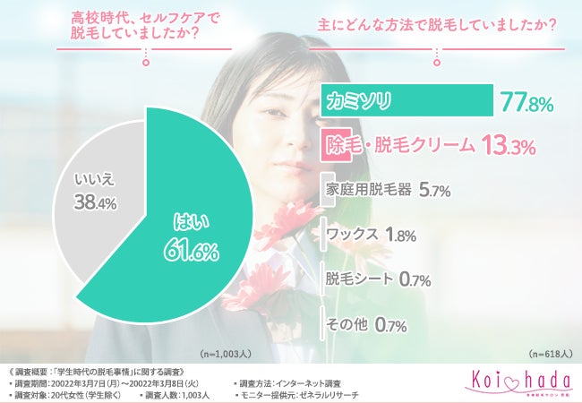 そこで、「高校時代、セルフケアで脱毛していましたか?」と質問したところ、6割以上の方が『はい(61.6%)』と回答しました。