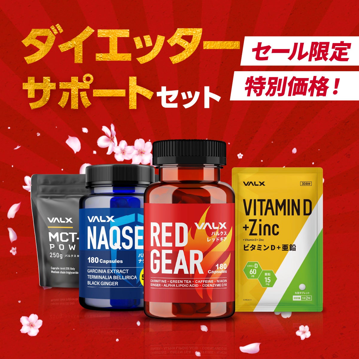 セット内容:レッドギア、ナクセル、MCTオイルパウダー、ビタミンD+亜鉛
