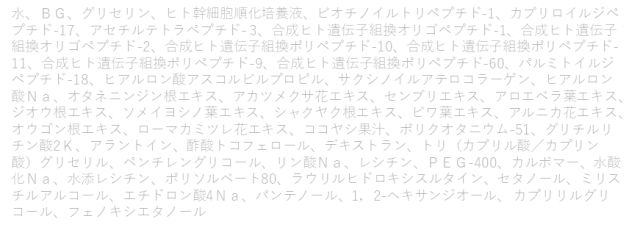 ※ご使用前に全成分をご確認のうえ、ご不安がある場合はパッチテスト等 お試しの上でのご使用をお勧めしております。