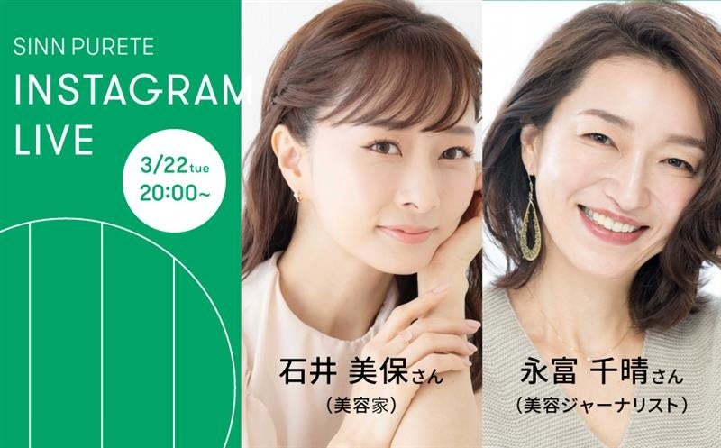 『SINN PURETÉ(シンピュルテ)』(製販元:株式会社アナイスカンパニー 東京都港区、発売元:株式会社JIMOS 福岡県福岡市)は、2022年3月22日(月)20時に美容家 石井美保さんと、美容ジャーナリスト 永富千晴さんによるインスタライブを実施することをお知らせいたします。