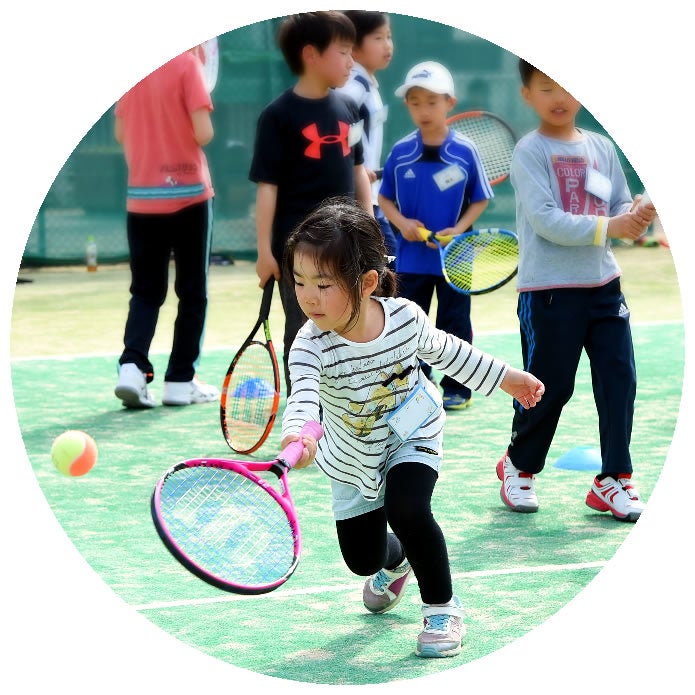 ITCテニススクールでは、走る・打つ・止まるといった、様々な競技にも通じる基本的な運動能力を養いながら、大人になってもケガや病気に負けない、丈夫な体・強い心を育てていきます。