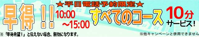 キャンペーン、早得の場合はお電話でのご予約のみとなりますので