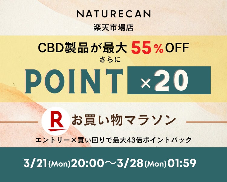 CBDオイル、CBDグミなどが最大55%オフ+楽天ポイントバック最大43倍!【Naturecan楽天市場店のお買い物マラソン】