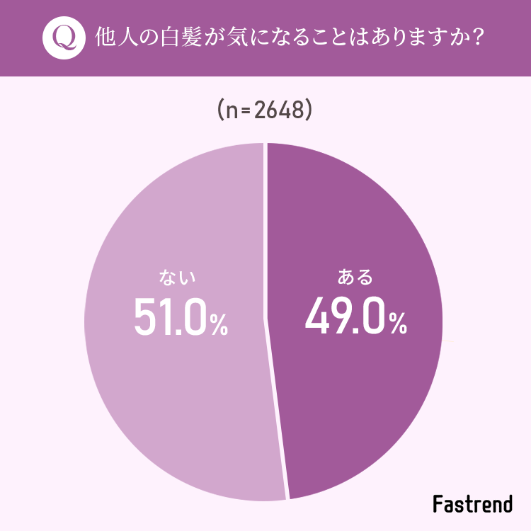 「ある」と回答した方が49%と、約半数の方が他人の白髪を気になったことがあるようです。