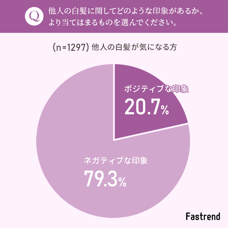 - 老けた印象になる。また、髪のつやを感じられない。自分が若白髪に悩んでいるため、余計他人の白髪が気になる。(20代女性)