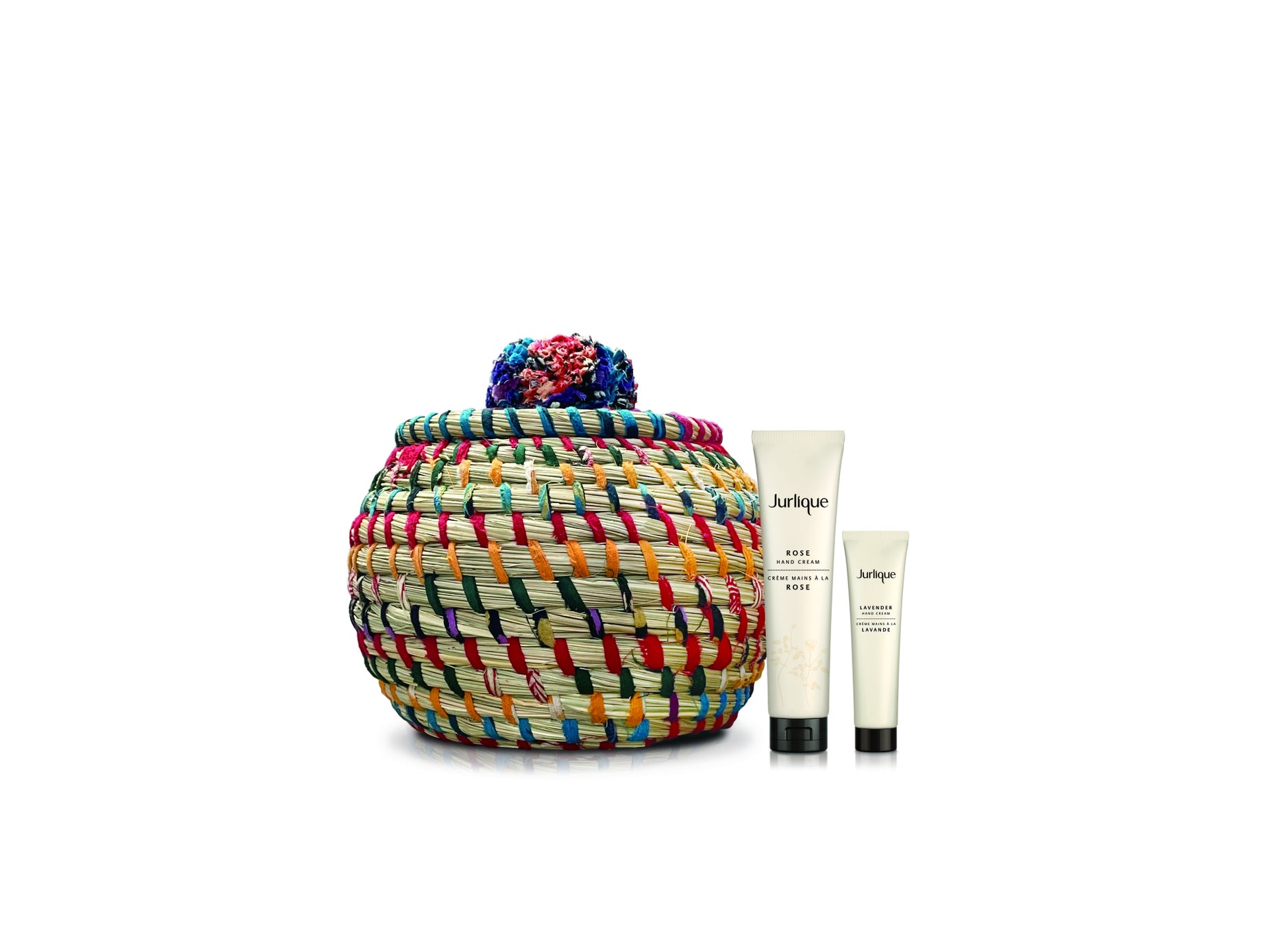今回は、母の日にふさわしい商品として、人気のローズ ハンドクリームの現品サイズに、ミニサイズのラベンダー ハンドクリームの2種類の香りをセレクト。ハンドメイドで一つ一つ丁寧にリサイクルサリーを編み込んだ、ピープルツリーのオリジナルラウンドバスケットと共にお届けします。ギフトとしてだけでなく、自分用としてもオススメの限定キットです。