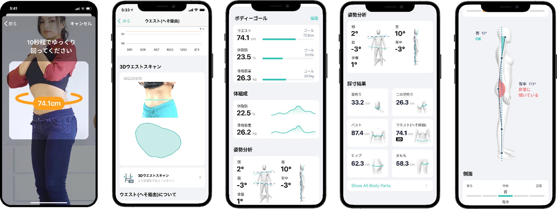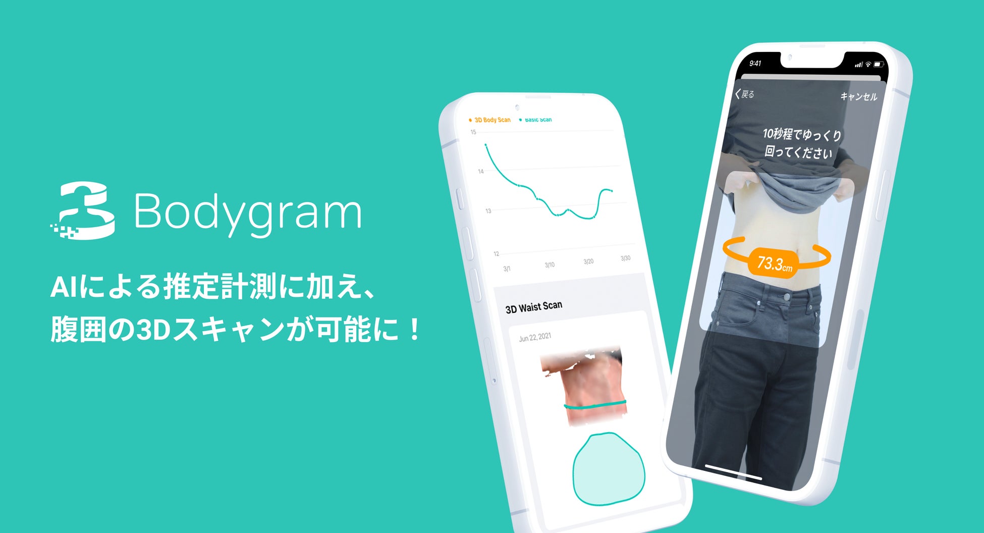 Bodygram Inc. (所在地:米国デラウェア州、CEO:Rei Aiba) はこの度、自社で開発するAI身体計測テクノロジーを搭載したアプリ「Bodygram」が新機能を追加し、UI/UXを一新したことを発表いたします。今回の機能アップデートにより、iOS端末に搭載されたTrueDepth(トゥルーデプス)カメラを用いて新機能『3Dウエストスキャン』が可能となり、従来のAIによる推定測定機能に加え、より高精度の計測結果を提供いたします。アプリ内ガイダンスにあわせて腹囲を360度撮影すると、各パーツの数値情報や3Dアバターでの可視化に加え、より実寸値に近いウエストスキャンが行えます。尚、UI/UXの変更はiOSから先行導入し、今後Androidでも順次対応となり、『3Dウエストスキャン』はTrueDepthカメラを搭載したiOS端末のみでご利用いただけます。