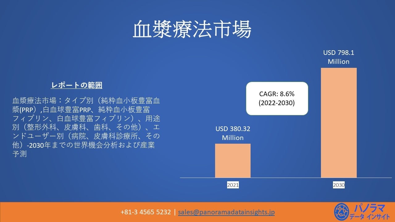 血漿療法の世界市場規模は2021年に380. 32百万米ドル、2022年から2030年までの予測期間において年平均成長率(CAGR)8.6%で推移し、2030年には798.1百万米ドルに達すると予測されています.