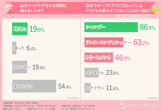さらに自宅でヘアケアする時間が増えた方が多いことから、コロナ禍により悩みやその解決の仕方について変化がみられているようです。