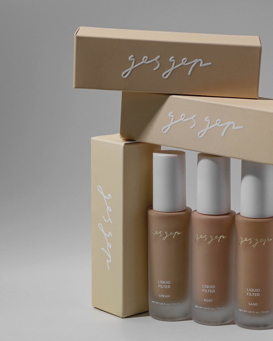 「gesgep(ジェスジェップ)」は韓国で2017年5月に誕生。韓国女優やアーティストのメイクを担当する有名メイクアップアーティスト、ソン・デシク氏とパク・テユン氏が手掛けるコスメブランドとして注目を集めています。このたびリキッドファンデーション「リキッドフィルター」の日本オフライン販売を開始いたします。