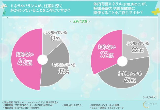 “有害”と言っているだけあって、有害ミネラルが蓄積されることによって妊娠基礎力を下げかねないことはある程度認識されているようですが、一方で「知らない」と答えた方も一定数いました。