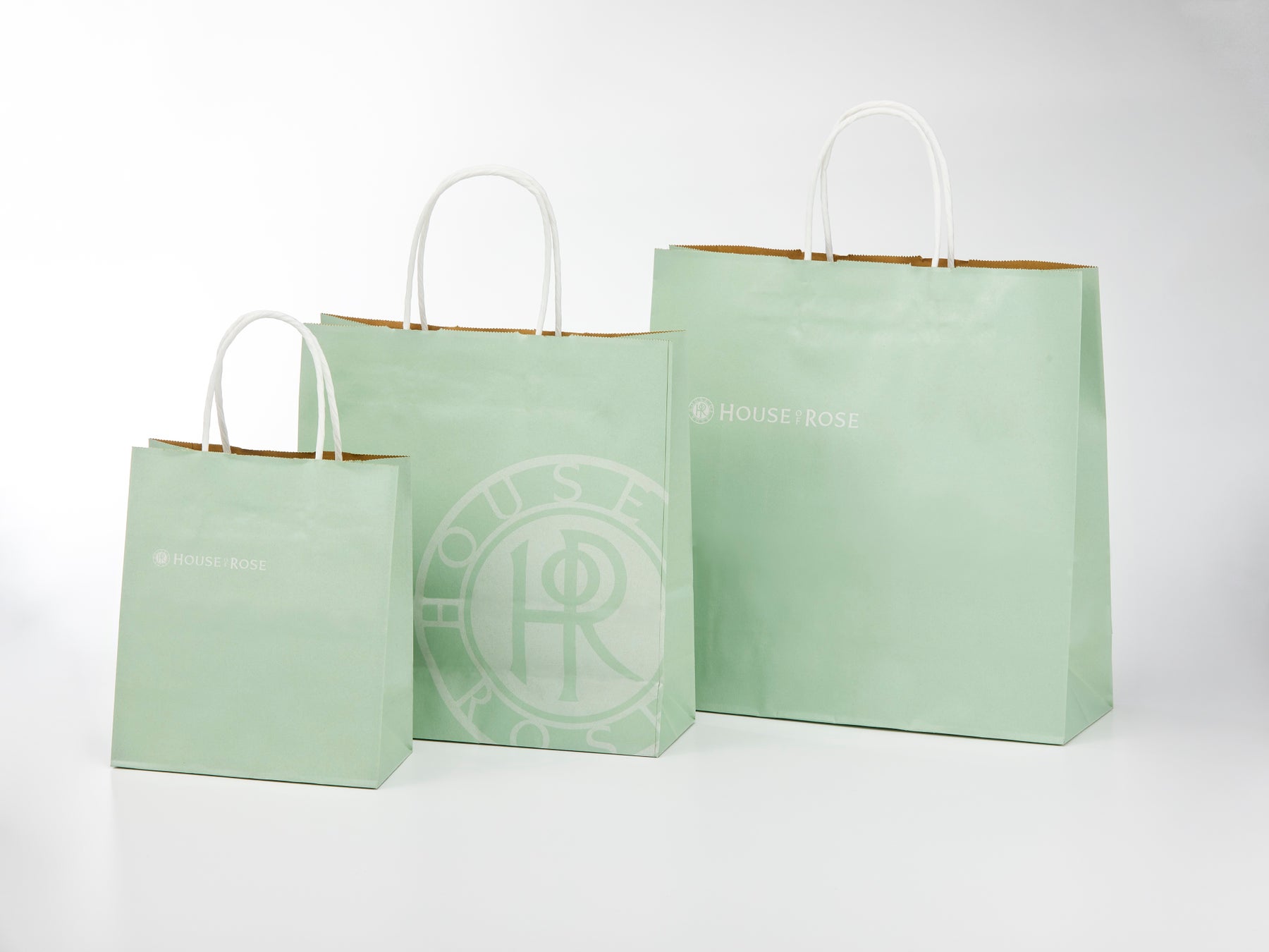 全国のハウス オブ ローゼ店舗で無償提供しているショッピングバッグを、リサイクル100%・FSC認証・雨カバーが不要な素材に変更し、有料化いたします。