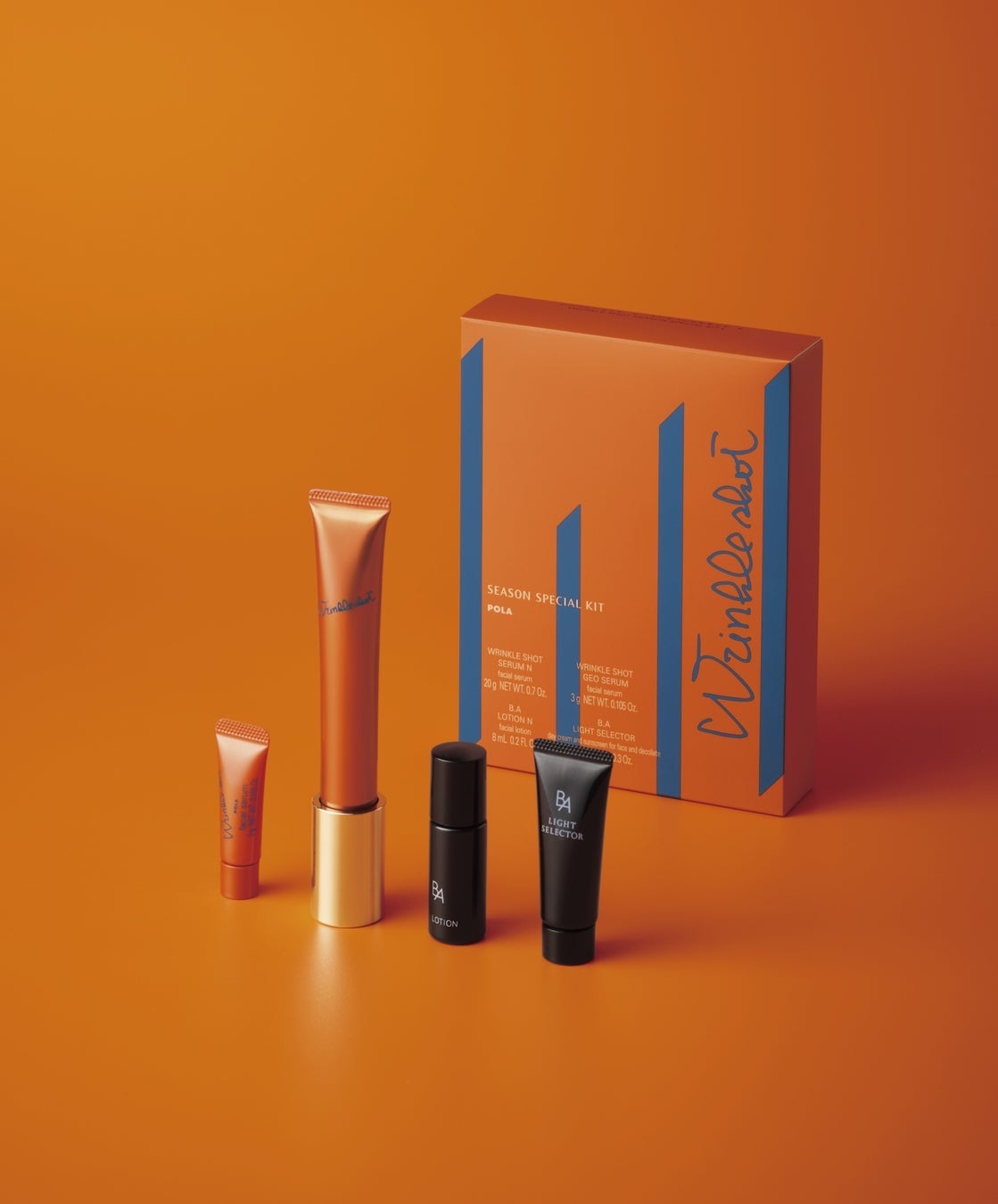 株式会社 ポーラ(本社:東京都品川区、社長:及川美紀)は、シワ改善のパイオニアとしてシワ研究に挑み続けるブランド「リンクルショット」より、 『リンクルショット シーズンスペシャルキット L』(¥14,850 <税抜¥13,500>)を、2022年6月1日に数量限定にて発売します。シワを改善する薬用化粧品リンクルショット メディカル セラム本品に、肌※1にうるおいとハリ・弾力感を与える薬用化粧品リンクルショット ジオ セラム、ポーラ最高峰ブランド「B.A」より生命感あふれるようなハリ肌を目指すB.A ローションと、紫外線や近赤外線から肌を守り、肌に良い「赤色光」を透過させ、ハリ・弾力感のある肌を目指すB.A ライト セレクターのミニサイズをセットにした、夏へ向けたスキンケアを提案するスペシャルなキットです。