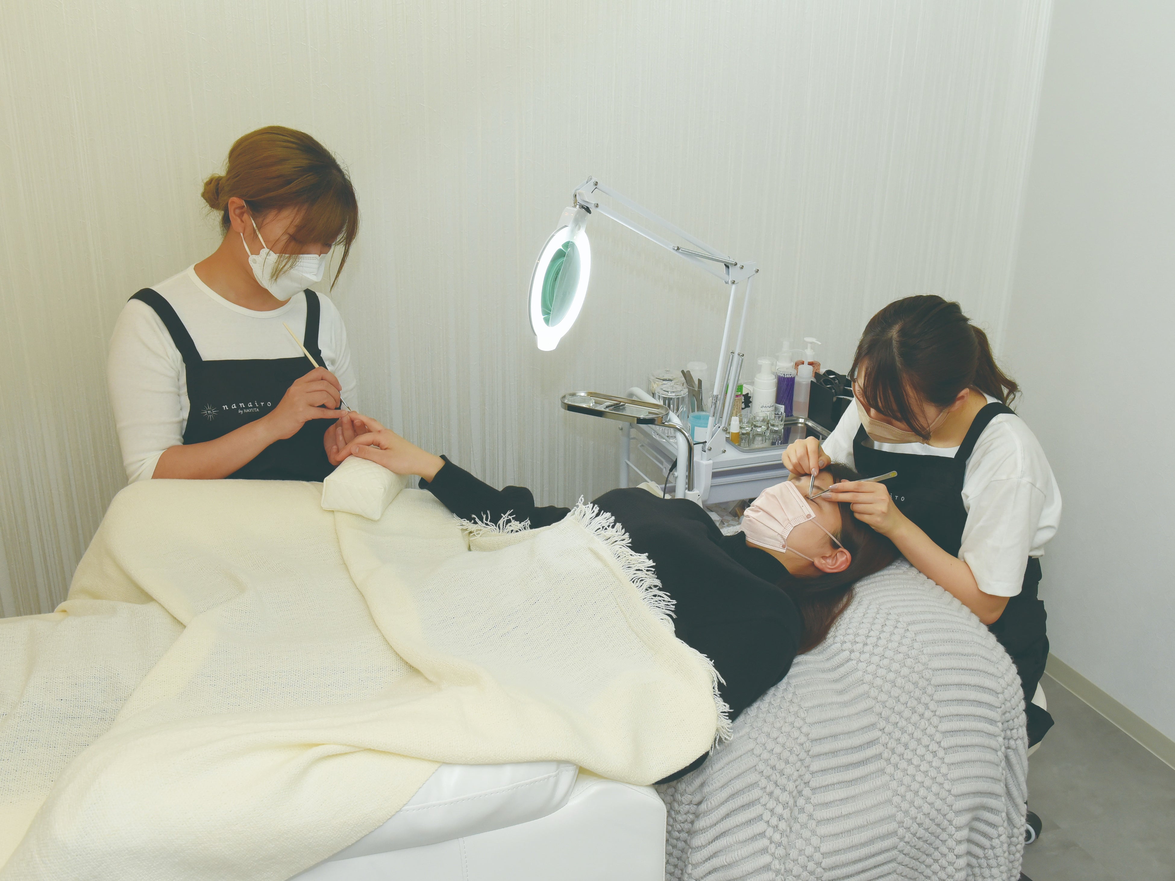 トータルビューティのお店だからこそ実現できる同時施術も対応可能。お客様の貴重な時間を無駄なく時短施術で対応します。