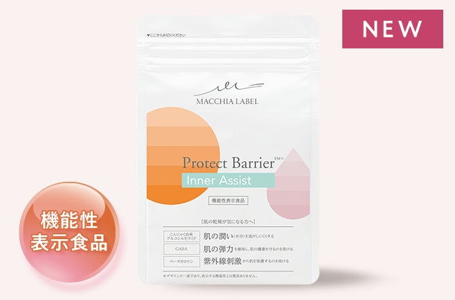 肌本来の力で肌を美しくすることを目指すMACCHIA LABEL /マキアレイベル(株式会社JIMOS本社:福岡県福岡市、http://www.macchialabel.com/)は、社内初の3つの機能を併せ持つ機能性表示食品『プロテクトバリアインナーアシスト』を、2022年4月6日(水)から発売いたします。