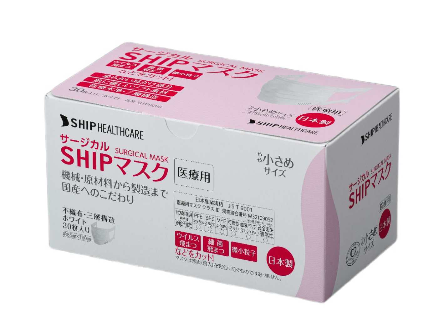○SHIPマスク(やや小さめサイズ)1箱30枚入り ※1ケース(24箱入り)もございます。