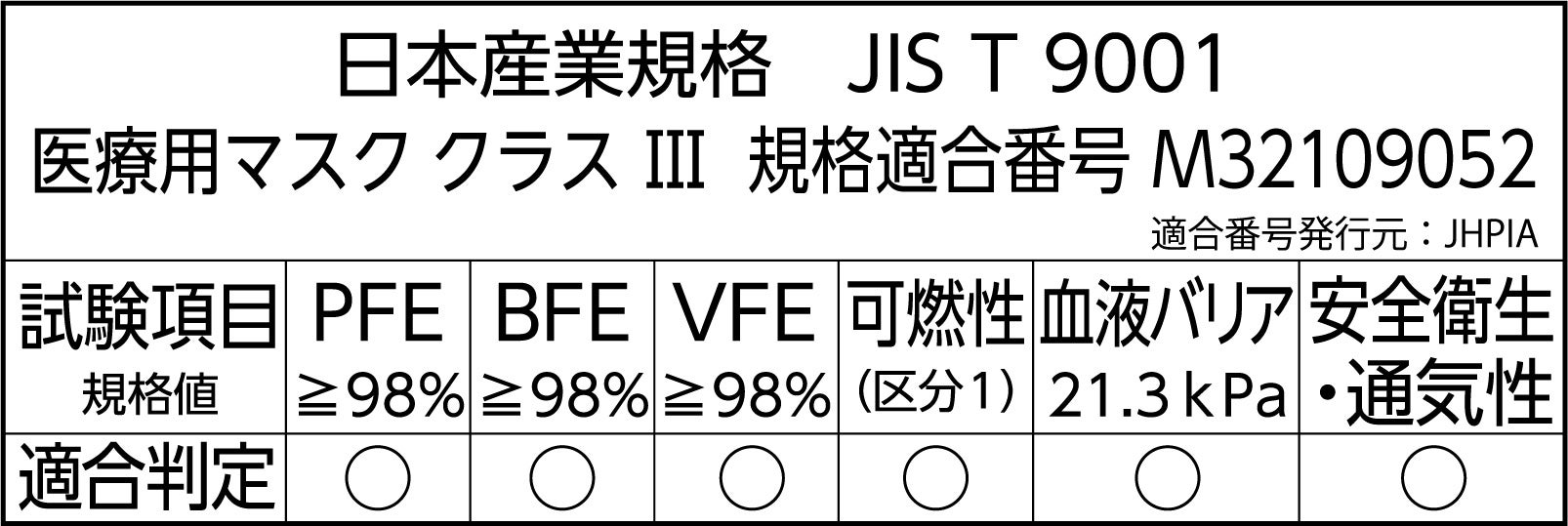 医療用マスク クラスⅢ 規格適合番号 M32109052