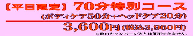 ボディケア50分+ヘッドケア20分 ¥3,600(税込¥4,180)