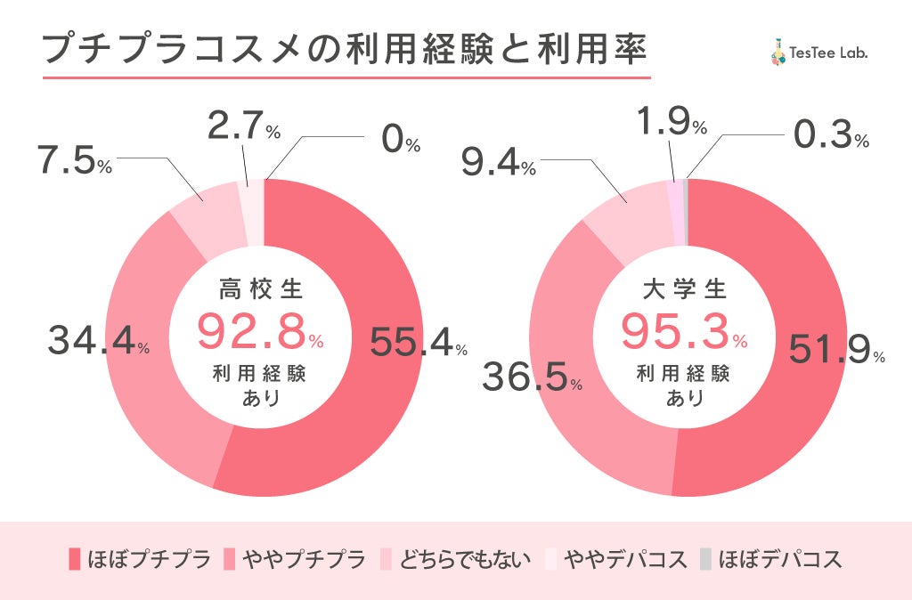 チャットボットを活用した広告・ネットリサーチ事業展開する株式会社テスティー(本社:東京都渋谷区、代表取締役:横江優希、以下テスティー)は、若年層を対象に調査した結果を発信する「TesTee Lab」において、15〜24歳までの女性791名(高校生319名、専門・短大含む大学生472名)を対象に「プチプラコスメ」に関する調査を、15〜24歳までの女性1,317名(高校生475名、専門・短大含む大学生842名)を対象に「デパコス」に関する調査を実施しました。