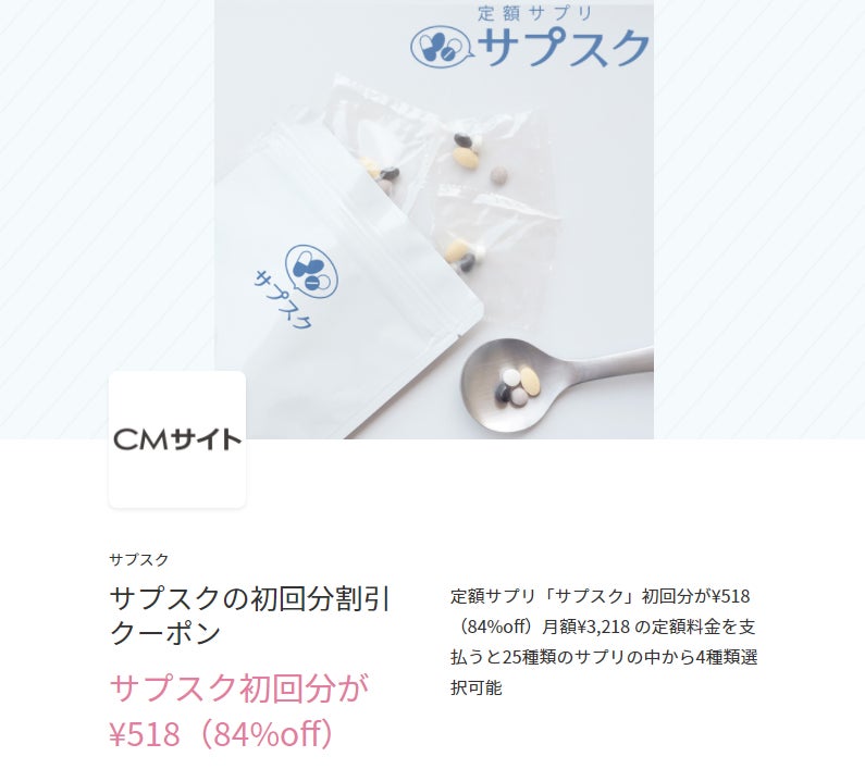 内 容:「サプスク」の初回利用料を84%割引の518円(税込)で提供